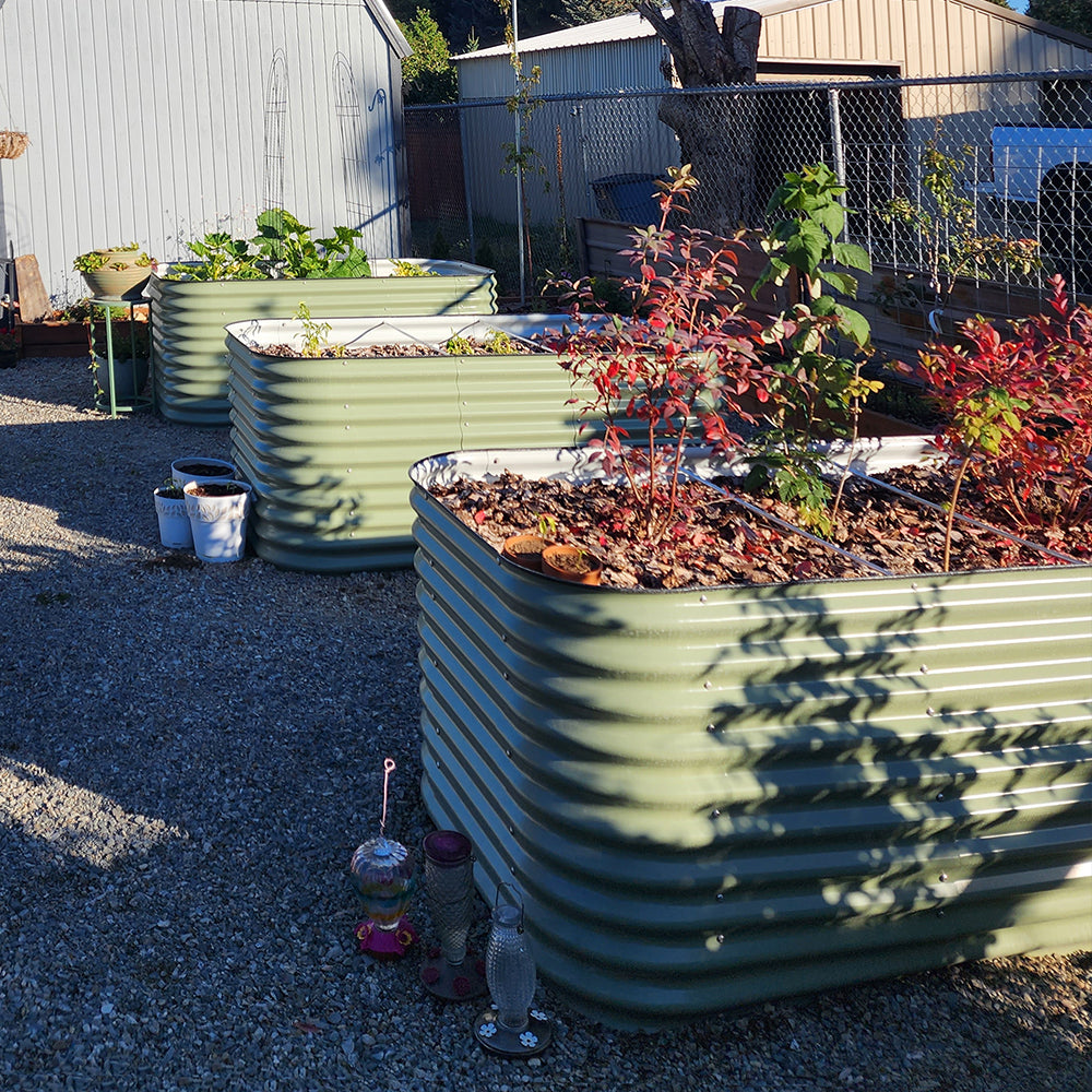 We're so proud of our 32" tall modular metal garden beds. 32'' Tall Corrugated Metal Raised Beds are a desirable height for most people, especially for those at an old age who have problems bending down or kneeling. It's easier on your back. With a waist high elevation, you can tend to care for your plants and veggies with less bending down. Unlike 17'' Tall Corrugated Metal Raised Beds, 32'' steel raised garden beds are very deep, meaning plants have lots of space to grow. So you can grow some veggies require deep root and more room for root growth, such as artichokes, beans, lima, pumpkins, sweet potatoes, tomatoes, etc.