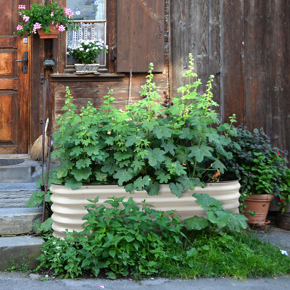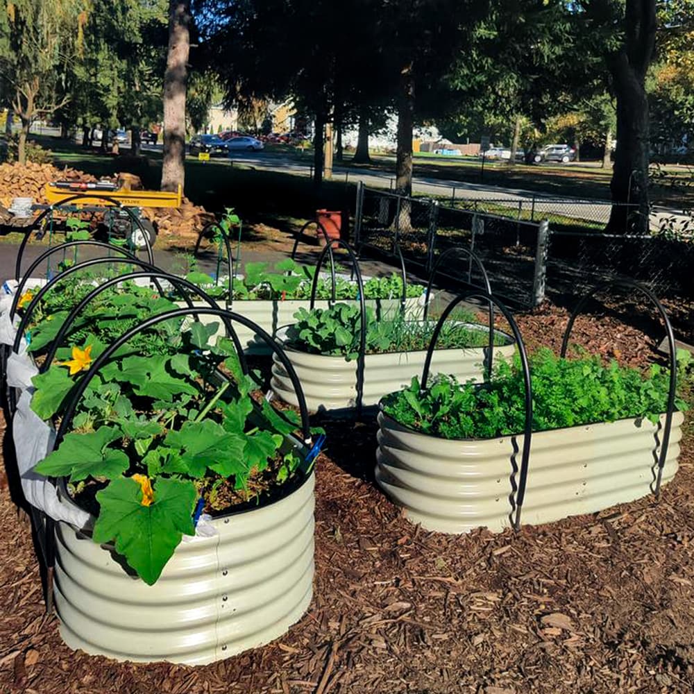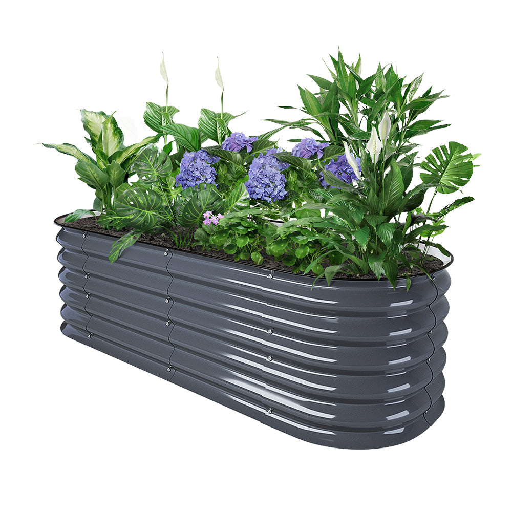 The 17" tall 4 in 1 metal garden bed is perfect for a kid's first planting attempt, because of its height, size, trendy colors and no sharp corner design.