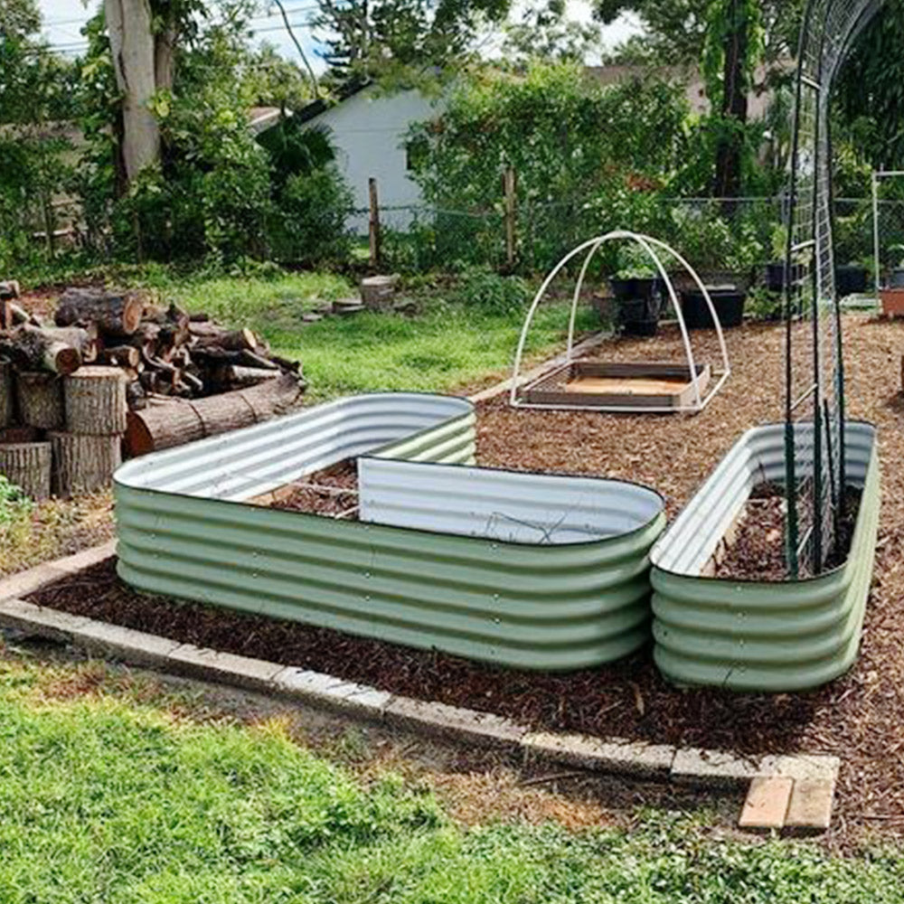 17" Tall L-Shaped Metal Modular Corrugated Raised Garden Beds